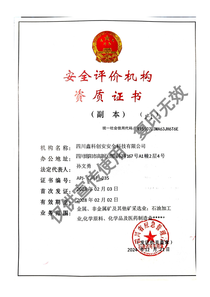 四川鑫科創(chuàng)安安全科技有限公司成立于2020年,是川北地區(qū)取得資質(zhì)的民營安全評價(jià)機(jī)構(gòu)(資質(zhì)證書編號(hào):APJ-(川)-035)。并于2022年?duì)款^成立綜合應(yīng)急救援隊(duì)伍 - 綿陽曙光應(yīng)急救援中心。